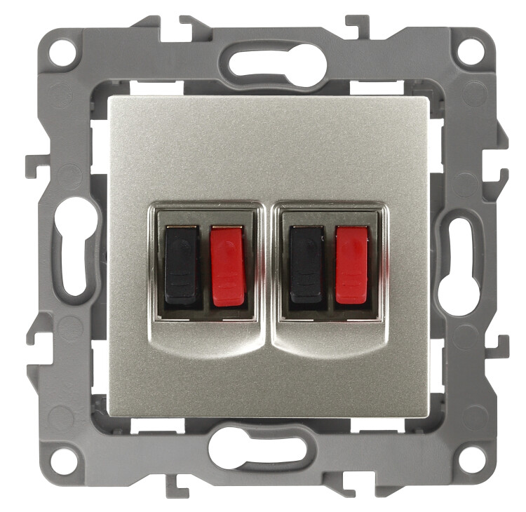 Розетка двойная аудио стерео серии Эра 12 скрытой установки механизм цвет перламутр 12-3112-15. Сделана из поликарбоната. Монтаж в подрозетник производится и на лапки, и на винты. Рамки приобретаются отдельно. Рамки Эра 12: 1 пост 12-5001-хх, 2 поста 12-5002-хх, 3 поста 12-5003-хх, 4 поста 12-5004-хх, 5 постов 12-5005-хх. Рамки Эра 12 Сатин: 1 пост 12-5101-хх, 2 поста 12-5102-хх, 3 поста 12-5103-хх, 4 поста 12-5104-хх, 5 постов - 12-5105-хх (хх - код цвета: 01-белый, 02-слоновая кость, 03-алюминий, 04-шампань, 05-антрацит, 06-чёрный, 07-ольха(белёный дуб-сатин), 08-вишня, 09-дуб, 10-венге, 11-сосна, 21-жёлтый, 22-оранжевый, 23-красный, 24-охра, 25-бордо, 26-лайм, 27-зелёный, 28-голубой, 29-синий).