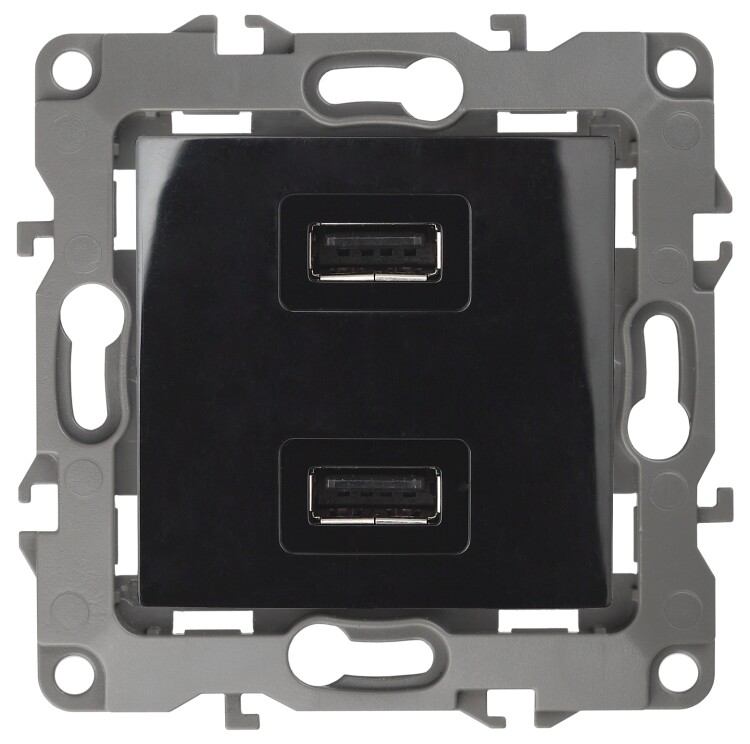 Устройство зарядное USB серии Эра 12 скрытой установки механизм цвет чёрный 12-4110-06. Номинальные характеристики 5В-2100мА. Сделано из поликарбоната. Монтаж в подрозетник производится и на лапки, и на винты. Рамки приобретаются отдельно.