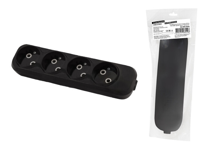 Колодка розеточная 4 гнезда 2П б/з 10А 250В черная серии "Народная" (кр.10шт)