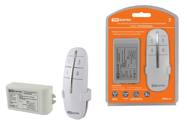 Применение:Дистанционное включение/отключение освещения:-люстры и торшеры;-акцентная подсветка;-точечное освещение;-садово-парковое освещение. Материалы:Пульты и контроллеры изготовлены из не поддерживающего горения пластика.Преимущества:Комфортное управление освещением.Полный базовый комплект для начала использования.Радиус действия до 30 метров.К контроллеру можно подключить до четырех каналов различных групп освещения (зависит от исполнения).Удобное подключение и управление освещением, в том числе в люстрах.Отсутствие необходимости прокладки дополнительных проводов, можно подключать к двухпроводной системе 2-4 канала нагрузки. Например : люстра+точечные светильники+светодиодная лента. Назначение:Для дистанционного беспроводного управления освещением. Конструкция:Пульт управления имеет в комплекте крепление на стену, фиксируемое к поверхности при помощи двухстороннего скотча (в комплекте) или при помощи саморезов.Передача сигнала осуществляется по радиочастоте 433,92 МГц.Управление осуществляется как при помощи пульта, так и с помощью стандартного настенного выключателя.