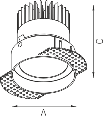 Встраиваемый светильник направленного света. Корпус светильника изготовлен из алюминия, декоративная рамка из окрашенного белой матовой краской алюминия. Поворотная оптическая часть закрыта защитным стеклом. Установка в ниши в потолках из гипсокартонных плит с помощью монтажных клипс.