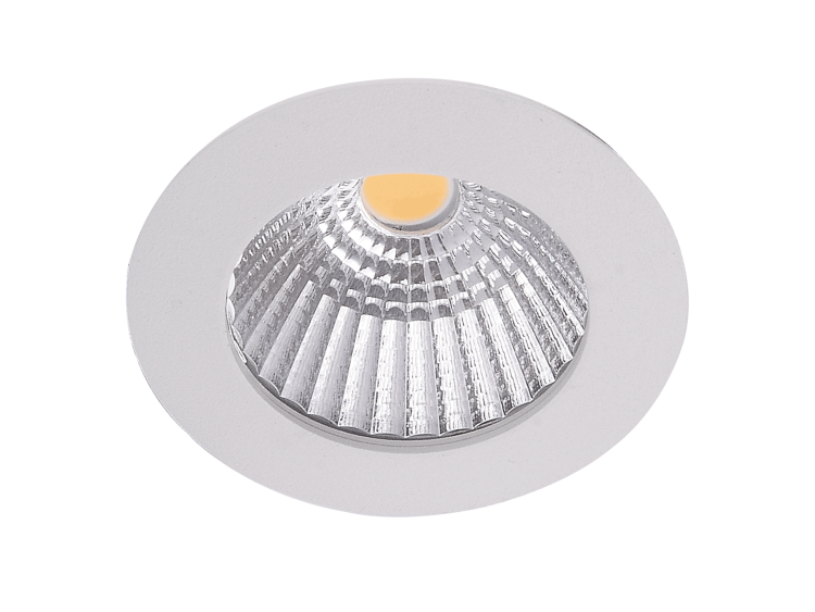 Встраиваемый светильник направленного света. Корпус светильника изготовлен из алюминия, декоративная рамка из окрашенного белой матовой краской алюминия. Оптическая часть закрыта защитным стеклом.