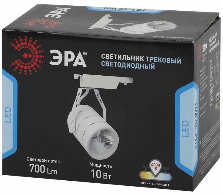 Трековый светильник TR3 - 10 WH от компании Эра расставит необходимые акценты в помещении. Такой светильники имеет подвижную конструкцию, которая позволяет регулировать угол наклона, изменяя восприятие объектов освещения. Трековые светильники выполняют несколько функций: в магазинах они направляют посетителей к нужному товару, в офисах разграничивают пространство, подчеркивают достоинства товара на витринах. Светильник имеет показатель цветовой температуры 4000К, который позволяет человеку чувствовать себя комфортно рядом с таким источником света. Светодиодная лампа имеет продолжительный срок службы (около 30000 часов), коэффициент пульсации составляет менее 5%, световой поток 70 Лм. Светильник отлично дополнит любой дизайн, создаст необходимые акценты. Большое разнообразие моделей трековых светильников компании Эра позволит подобрать лучший вариант освещения для конкретного пространства.