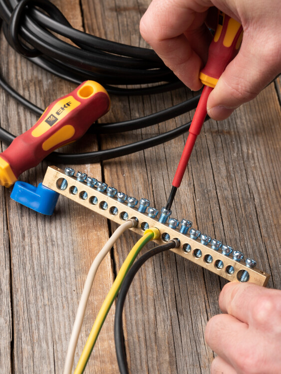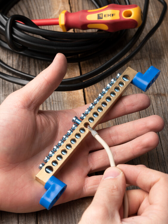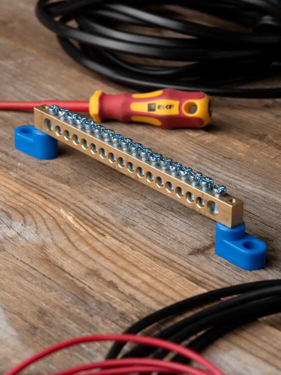 Шины предназначены для присоединения нулевых проводников (шина N) и заземления (шина PE). Шины выполнены из латуни и никелированной латуни. Нулевая шина устанавливается на изоляторе.