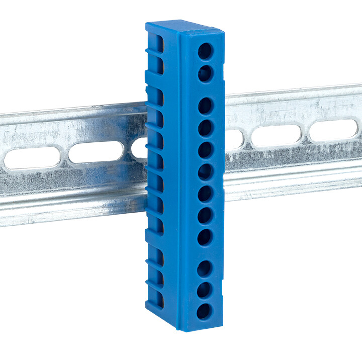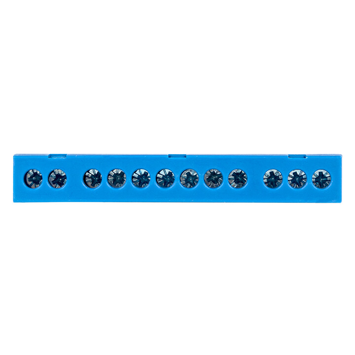 Шина "0" N (6х9мм) 12 отверстий латунь синий изолированный корпус на DIN-рейку EKF PROxima (кр. 20шт)