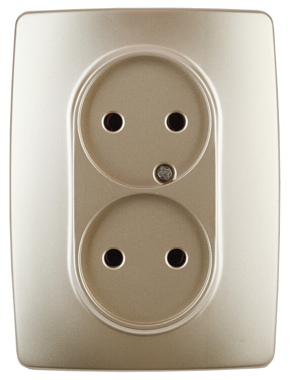 Розетка двойная без заземления серии Эра 12 скрытой установки механизм цвет шампань 12-2107-04. Номинальные характеристики 16А 250В . Сделана из поликарбоната, оснащёна автоматическими клеммами для быстрй и надёжной фиксации жил кабеля в механиме. Парные клеммы обеспечивают соединение шлейфом. Монтаж в подрозетник производится и на лапки, и на винты. Рамки приобретаются отдельно. Рамки Эра 12: 1 пост 12-5001-хх, 2 поста 12-5002-хх, 3 поста 12-5003-хх, 4 поста 12-5004-хх, 5 постов 12-5005-хх. Рамки Эра 12 Сатин: 1 пост 12-5101-хх, 2 поста 12-5102-хх, 3 поста 12-5103-хх, 4 поста 12-5104-хх, 5 постов - 12-5105-хх (хх - код цвета: 01-белый, 02-слоновая кость, 03-алюминий, 04-шампань, 05-антрацит, 06-чёрный, 07-ольха(белёный дуб-сатин), 08-вишня, 09-дуб, 10-венге, 11-сосна, 21-жёлтый, 22-оранжевый, 23-красный, 24-охра, 25-бордо, 26-лайм, 27-зелёный, 28-голубой, 29-синий).
