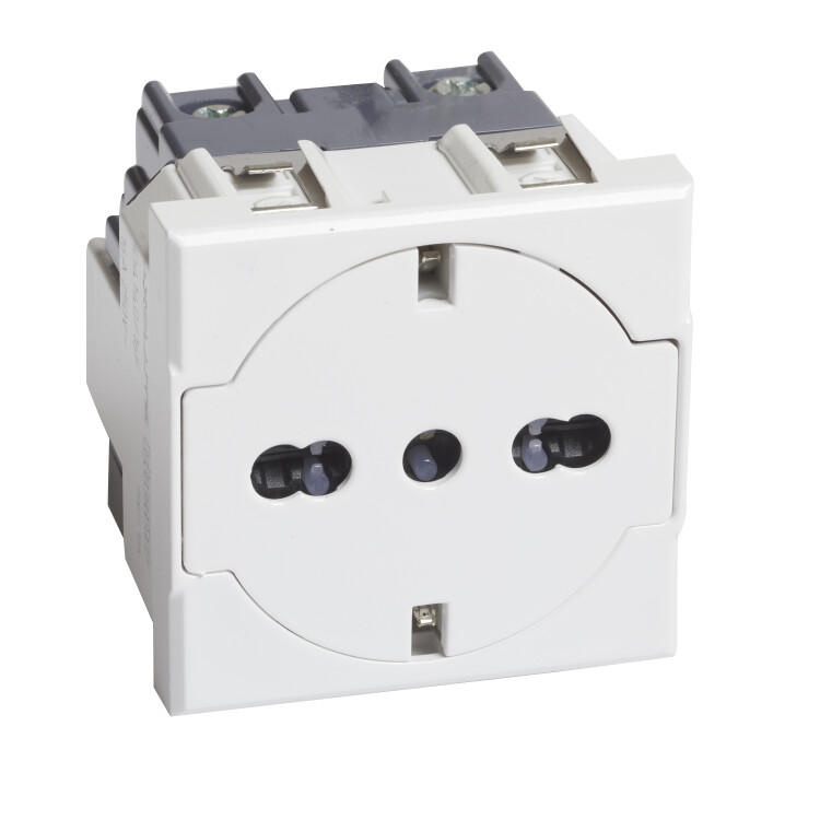 AXOLUTE. Розетка 2К+З 16А 250В, немецкого/итальянского стандартов,с плоской лицевой панелью. Цвет Белый