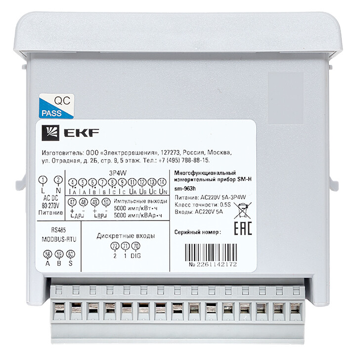 Многофункциональный измерительный прибор является цифровым программируемым устройством, предназначенным для измерения параметров трехфазных 3-х или 4-х проводных сетей с симметричной и несимметричной нагрузкой с одновременным отображением измеряемых величин и цифровой передачей данных. Прибор дает возможность управления, анализа и оптимизации работы энергетического оборудования, систем и промышленных цепей. Прибор позволяет измерить следующие параметры: •среднеквадратичные значения тока и напряжения, частоты, активной, реактивной и полной мощности, активной и реактивной энергии в прямом и обратном направлениях; •коэффициенты мощности, частоты; •усредненная активная и реактивная мощность; •гармоники; •коэффициент гармонических искажений; •пиковые значение.