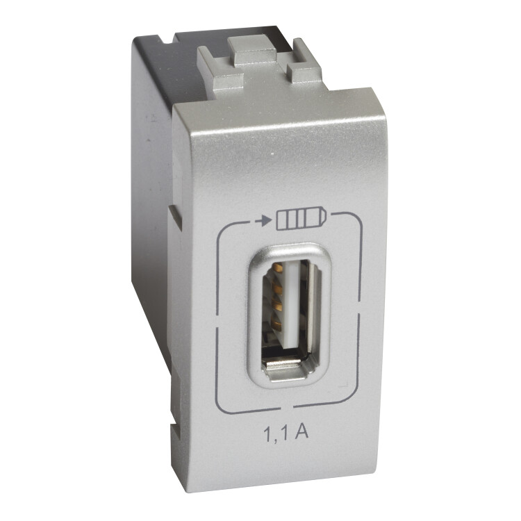 Livinglight. Розетка USB для зарядки мобильных устройств 1,1А 230/5В. 1 модуль. Цвет Алюминий