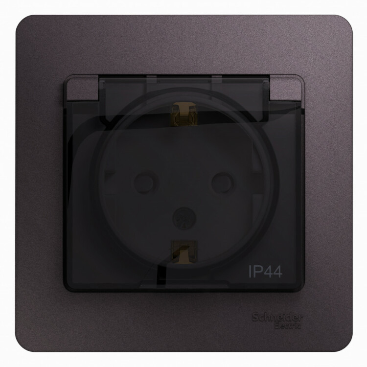 Розетка Systeme Electric (ранее Schneider Electric) серии Glossa (в сборе, цвет сиреневый туман) одинарная с заземлением, шторками и крышкой подходит для сетей 250 В, на ток 16 А.