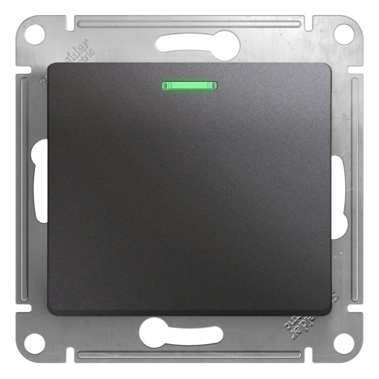 Механизм Systeme Electric (ранее Schneider Electric) серии Glossa (цвет графит) переключателя 1-клавишного с подсветкой подходит для сетей 250 В, на ток 10 А. Благодаря современной светодиодной подсветке зеленого цвета изделие легко найти в темноте. Переключатель позволяет управлять одним источником света с двух точек. Выполнен из материала PС+ASA, стойкого к УФ-излучению и появлению царапин. Эргономичные клеммы расположены в два ряда: сверху и снизу.