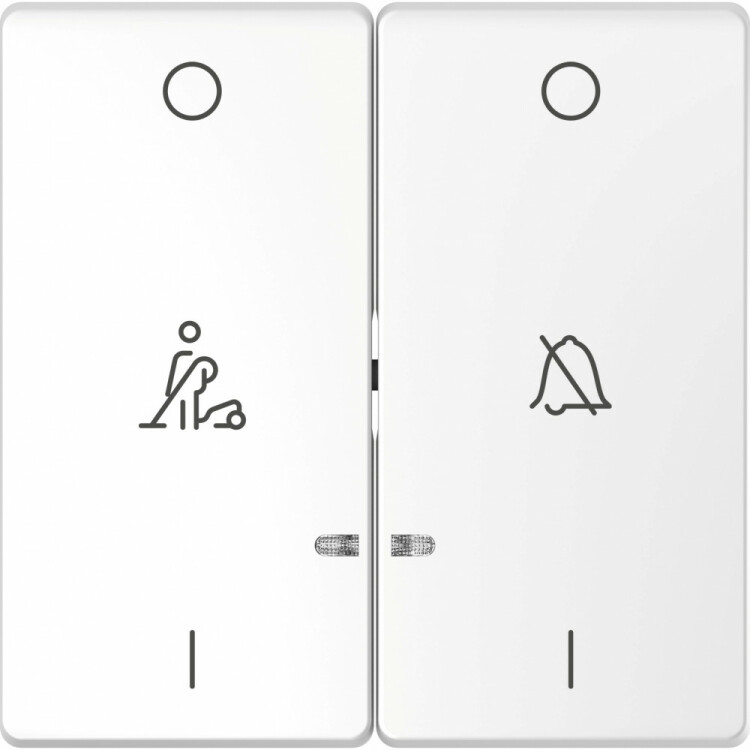 Клавиша Schneider Electric Merten серии D-Life (белый лотос) двойная с пиктограммами «перечеркнутый звонок/горничная» предназначена для механизмов двухклавишного выключателя или кнопочного выключателя.