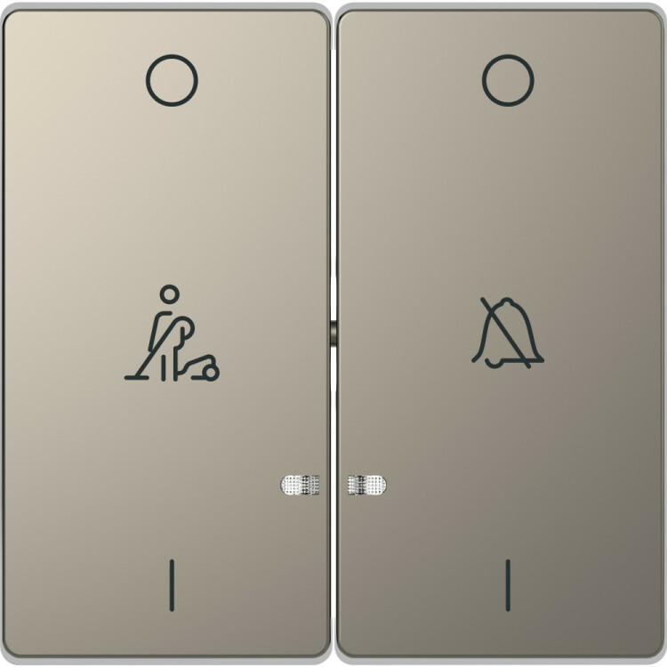 Клавиша Schneider Electric Merten серии D-Life (никель) двойная с пиктограммами «перечеркнутый звонок/горничная» предназначена для механизмов двухклавишного выключателя или кнопочного выключателя.