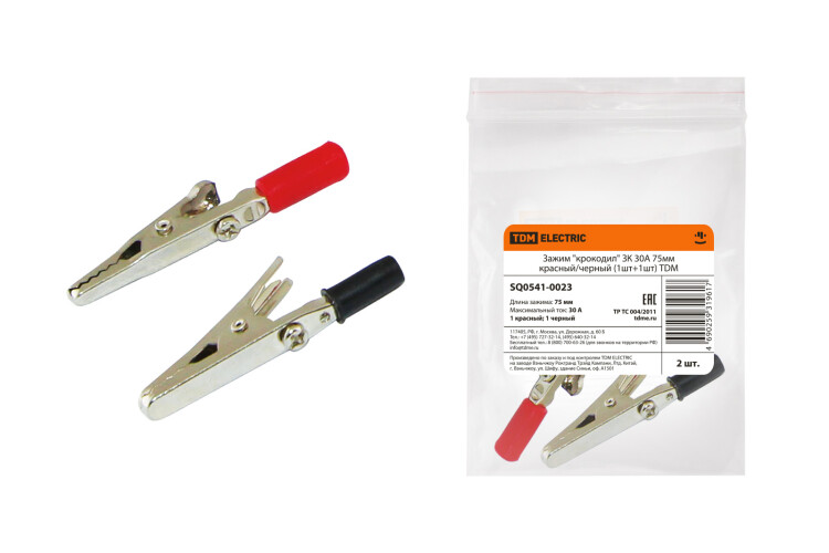 Зажим "крокодил" ЗК 30А 75мм красный/черный (1шт+1шт) TDM (кр.10упак)