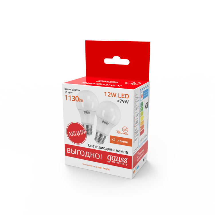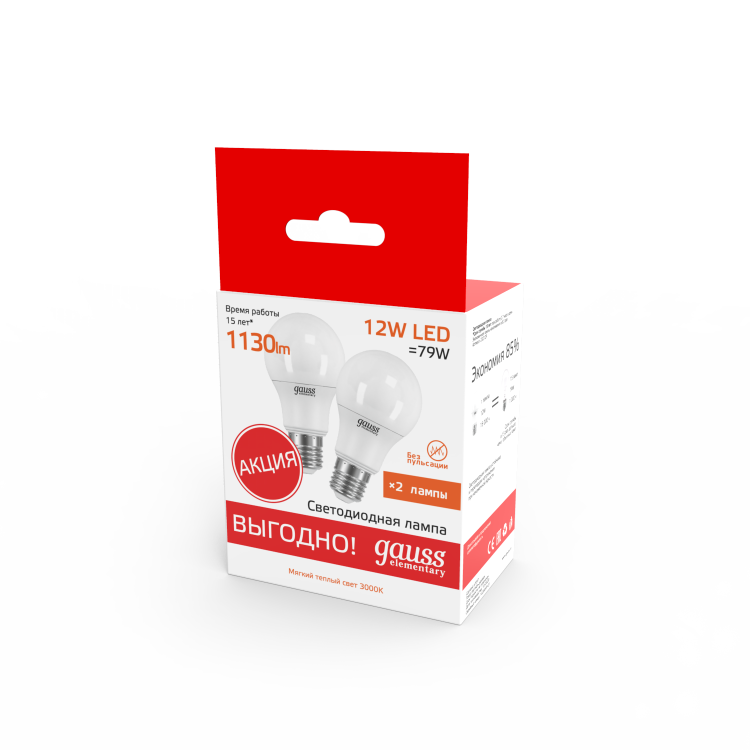 Приятный и спокойный свет температуры 3000К, создающий уютную атмосферу в помещении. Две идентичные лампочки в упаковке гарантируют вашему световому решению равномерность и симметрию.