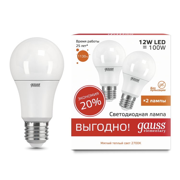 Лампа Gauss Elementary A60 удобное решение для освещения вашего дома или офиса. Сочетание хорошей яркости и эффективности потребления позволит вам сэкономить электроэнергию и следовательно деньги на счетах за свет.
