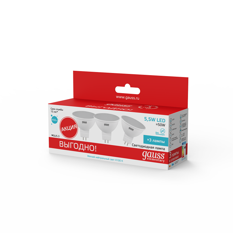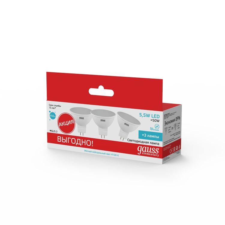 Лампа Gauss Elementary MR16 превратит самое обычное помещение в уникальное пространство, наполненное светом. Требуя всего 5.5 ватт мощности она значительно превосходит обычные лампы по энергопотреблению, что в свою очередь позволяет значительно сэкономить на счетах за электричество.