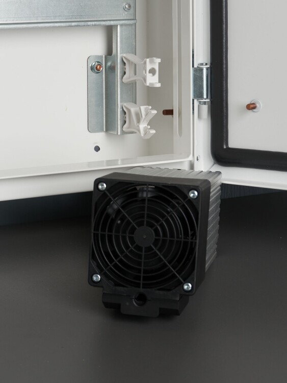 Обогреватель на DIN-рейку предназначен для нагрева воздуха внутри электротехнических шкафов. Создаваемый конвекционных воздушный поток предотвращает образование областей с низкой температурой и защищает электрические компоненты от образования конденсата и замерзании при перепадах температуры, а также коррозии металлических элементов активного оборудования. Наличие калорифера с саморегулированием обеспечивает естественную циркуляцию нагретого воздуха внутри шкафа и позволяет избежать перегрева. При установке в паре с терморегулятором используется для поддержания требуемой температуры внутри шкафа и организации стабильной работы установленного оборудования.