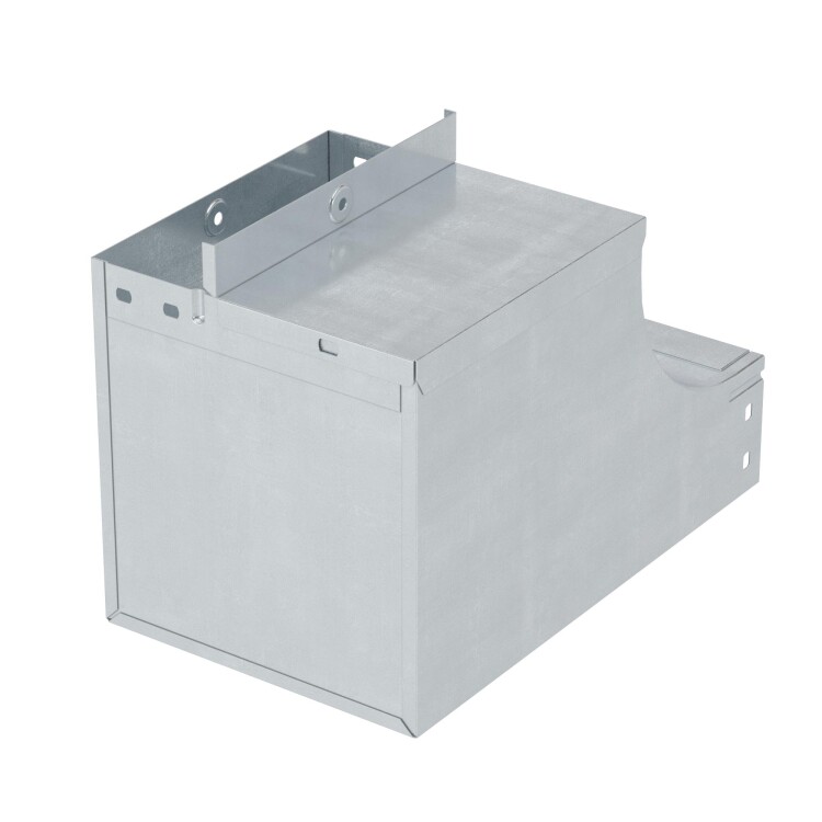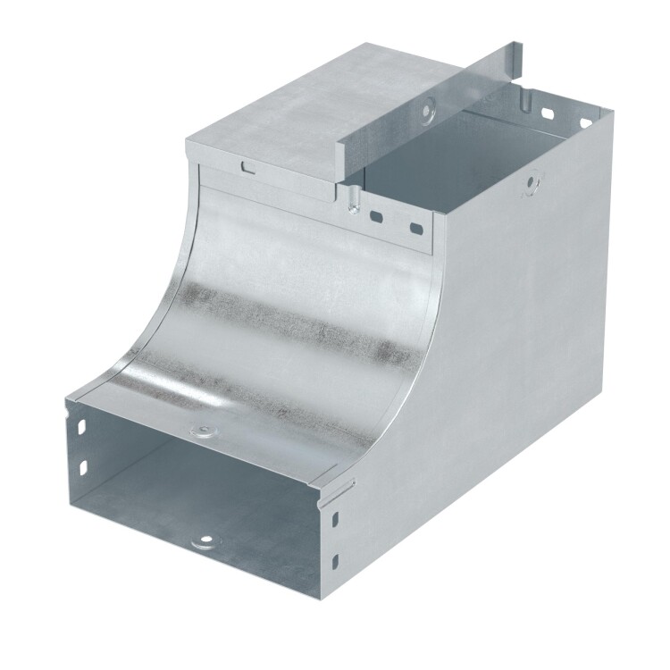 Угол применяется с лотками шириной 100 мм и высотой 80 мм. Внутренний радиус аксессуара - 100 мм. Толщина стали – 1 мм. Исполнение – "сталь, оцинкованная по методу Сендзимира". Применение комплектных аксессуаров облегчает расчет числа необходимых элементов для монтажа – в комплект уже входят соединительные пластины и детали крепежа.