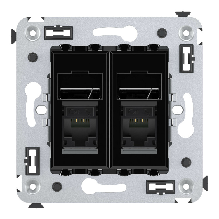 Компьюте рная розетка двойная используется для подключения компьютерной техники и соединения с патч-панелью. Компьютерная розетка предназначена для скрытого монтажа в стену. Розетка RJ-45 категории 5e – это наиболее популярная на сегодняшний день модель. Она позволяет организовать сеть с частотой 125 МГц и скоростью до 1000 Мбит/с.