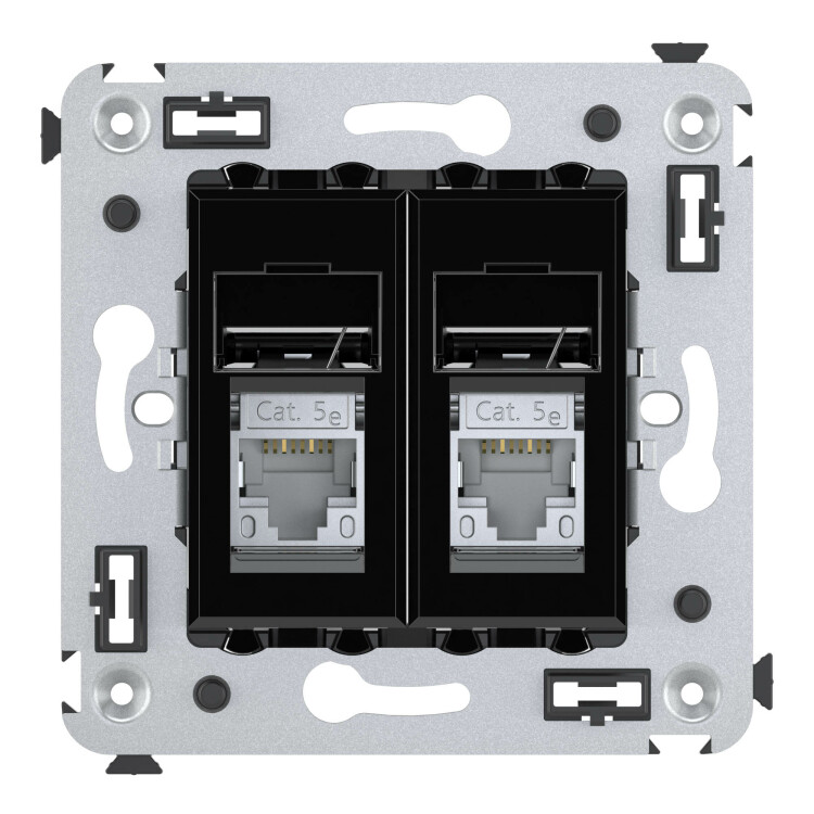 Компью терная розетка двойная используется для подключения компьютерной техники и соединения с патч-панелью. Компьютерная розетка предназначена для скрытого монтажа в стену. Розетка RJ-45 категории 5e – это наиболее популярная на сегодняшний день модель. Она позволяет организовать сеть с частотой 125 МГц и скоростью до 1000 Мбит/с.