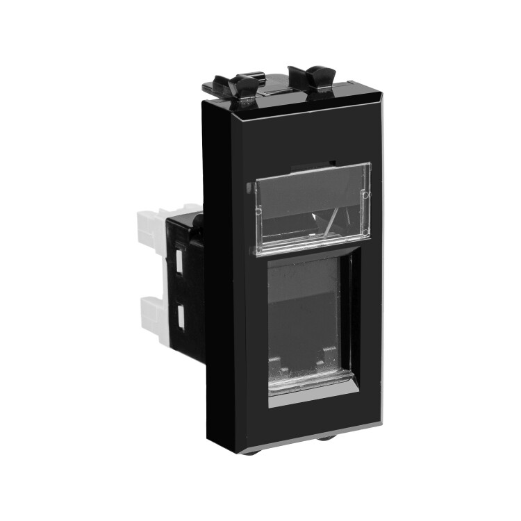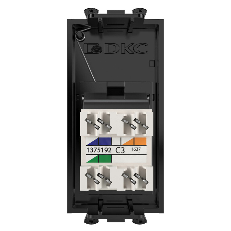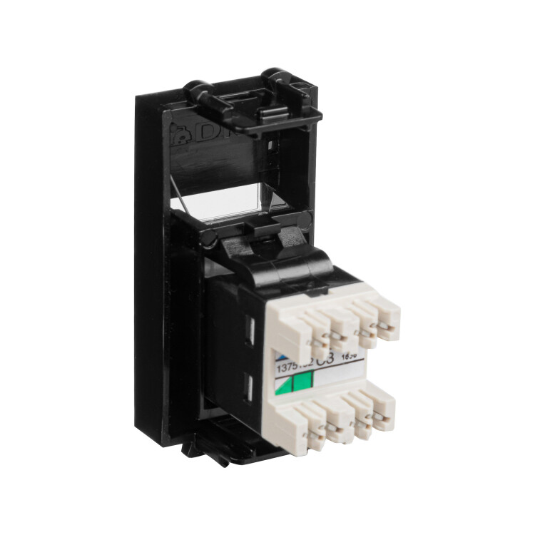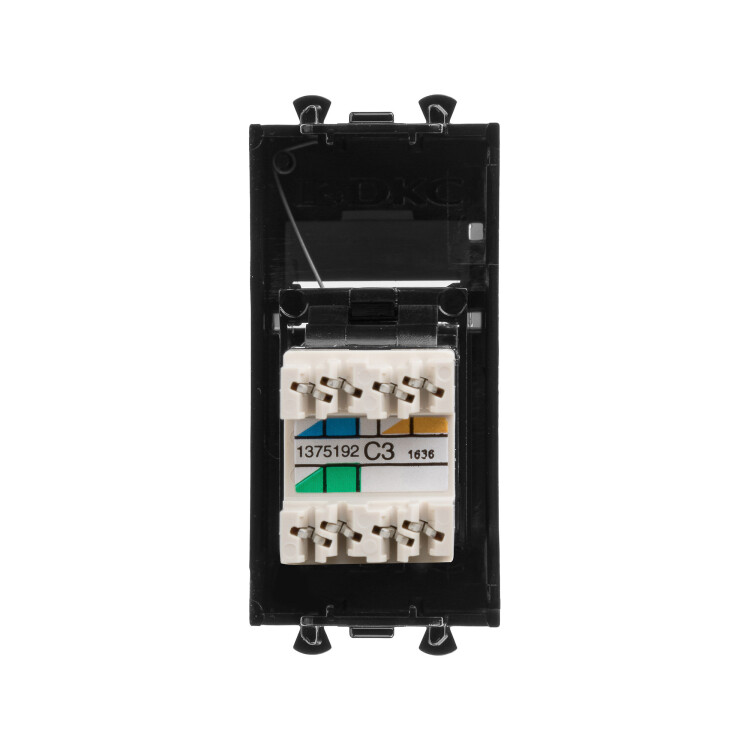 Телефонн ая розетка RJ-12 модульная. Предназначена для монтажа в систему кабельных коробов "In-liner Front", систему алюминиевых кабельных коробов и колонн "Aero", лючки и башенки BUS, при помощи рамок-суппортов и каркасов "Avanti" (код 4400912 и т.д.). Служит для подключения телефонного кабеля к рабочему месту. 6P6C. С пылезащитной шторкой, с маркировочной табличкой. В комплекте разъем Keystone. Для заделки контактов используется инструмент типа 110. Фиксация в подрозеточные коробки глубиной не менее 45 мм при помощи каркаса с лапками (код 4400802) и саморезов. 1 модуль. Цвет: "Черный квадрат"