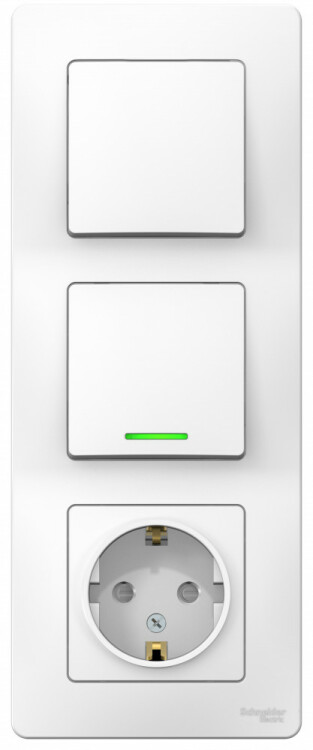 Блок Systeme Electric (ранее Schneider Electric) BLANCA (белый, скрытой установки) предназначен для сетей до 250В, состоит из розетки на 16А с заземлением и шторками и двух одноклавишных выключателей на 10А, один из которых с подсветкой, что делает его легко находимым в отсутствие освещения. Блок удобен в применении и отлично подходит для коридора. Корпус изделия выполнен из ABS-пластика.