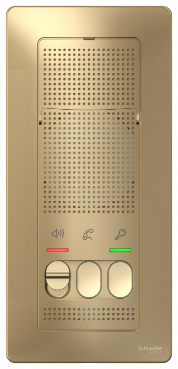 Устройство Systeme Electric (ранее Schneider Electric) BLANCA (цвет – титан) переговорное настенного монтажа предназначено для домофонных систем, питается от батарейки (3 элемента питания ААА х 1,5В). Громкость устройства регулируется, нанесены символы «Звук» и «Разговор». Размеры устройства: 187*84*25 мм. Корпус изделия выполнен из ABS-пластика.