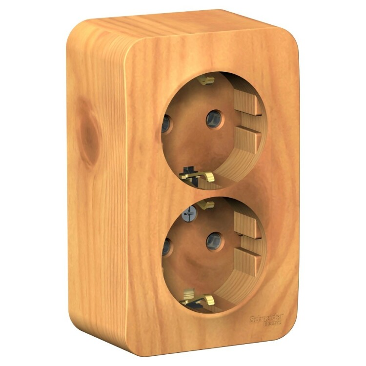 Розетка Systeme Electric (ранее Schneider Electric) BLANCA (ясень, открытой установки) двухместная, без шторок, с заземлением и изолирующей пластиной предназначена для сетей до 250В, на ток до 16А. Двухместная розетка позволяет подключить два устройства в одном месте. Заземление обеспечивает безопасность при косвенном прикосновении. Изделия цвета Ясень обладают уникальным рисунком, напоминающим древесный сруб. Она изготовлена из ABS-пластика, проста в установке и удобна в применении.