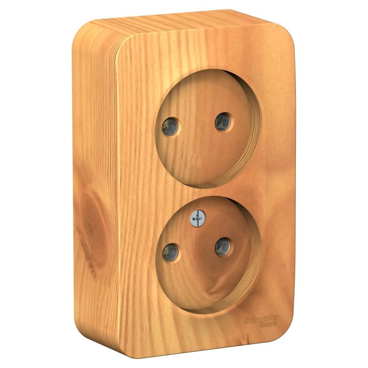 Розетка Systeme Electric (ранее Schneider Electric) BLANCA (ясень, открытой установки) двухместная, без шторок и заземления, с изолирующей пластиной предназначена для сетей до 250В, на ток до 16А. Двухместная розетка позволяет подключить два устройства в одном месте. Изделия цвета Ясень обладают уникальным рисунком, напоминающим древесный сруб. Она изготовлена из ABS-пластика, проста в установке и удобн а в применении.