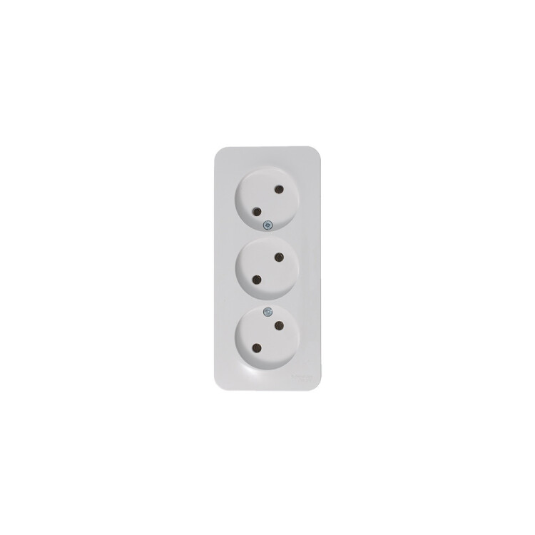 Розетка Systeme Electric (ранее Schneider Electric) BLANCA (белый, открытой установки) трехместная, без шторок и заземления, с изолирующей пластиной предназначена для сетей до 250В, на ток до 16А. Трехместная розетка позволяет подключить три устройства в одном месте. Она изготовлена из ABS-пластика, проста в установке и удобна в применении.
