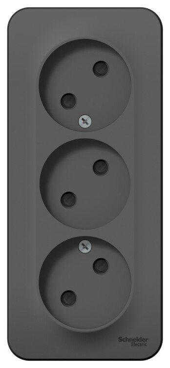 Розетка Systeme Electric (ранее Schneider Electric) BLANCA (антрацит, открытой установки) трехместная, без заземления, со шторками и изолирующей пластиной предназначена для сетей до 250В, на ток до 16А. Трехместная розетка позволяет подключить три устройства в одном месте. Шторки обеспечат дополнительную безопасность в помещении, где находятся дети. Корпус изделия выполнен из ABS-пластика.