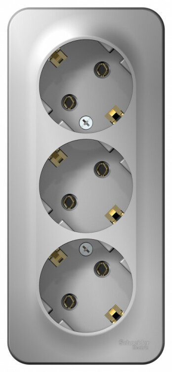Розетка Systeme Electric (ранее Schneider Electric) BLANCA (алюминий, открытой установки) трехместная, без шторок, с заземлением и изолирующей пластиной предназначена для сетей до 250В, на ток до 16А. Трехместная розетка позволяет подключить три устройства в одном месте. Заземление обеспечивает безопасность при косвенном прикосновении. Она изготовлена из ABS-пластика, проста в установке и удобна в прим енении.