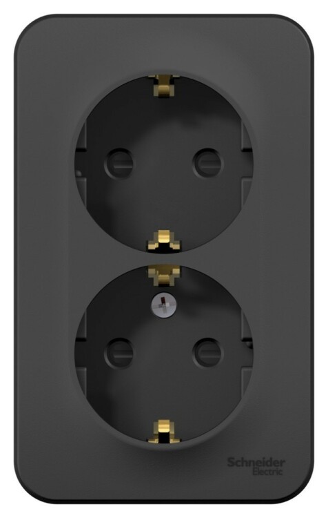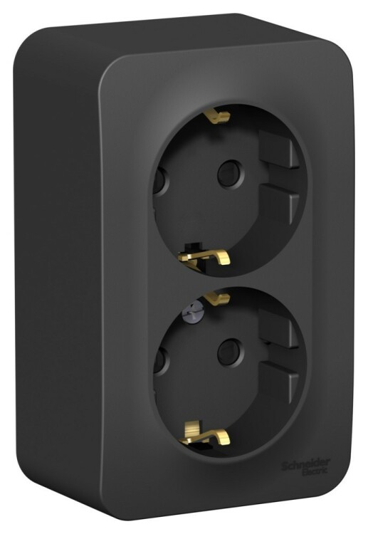 Розетка Systeme Electric (ранее Schneider Electric) BLANCA (антрацит, открытой установки) двухместная, с заземлением, шторками и изолирующей пластиной предназначена для сетей до 250В, на ток до 16А. Двухместная розетка позволяет подключить два устройства в одном месте. Шторки и заземление обеспечивают дополнительную безопасность. Корпус изделия выполнен из ABS-пластика.
