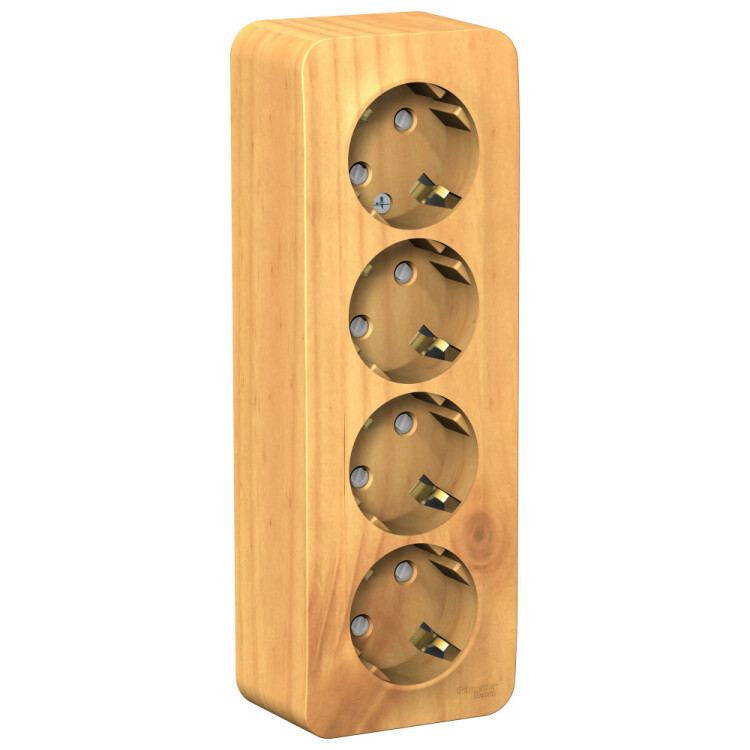 Розетка Systeme Electric (ранее Schneider Electric) BLANCA (ясень, открытой установки) четырехместная, с заземлением, шторками и изолирующей пластиной предназначена для сетей до 250В, на ток до 16А. Четырехместная розетка позволяет подключить четыре устройства в одном месте. Шторки и заземление обеспечивают дополнительную безопасность. Изделия цвета Ясень обладают уникальным рисунком, напоминающим древесный сруб. Она изготовлена из ABS-пластика, проста в установке и удобна в применении.