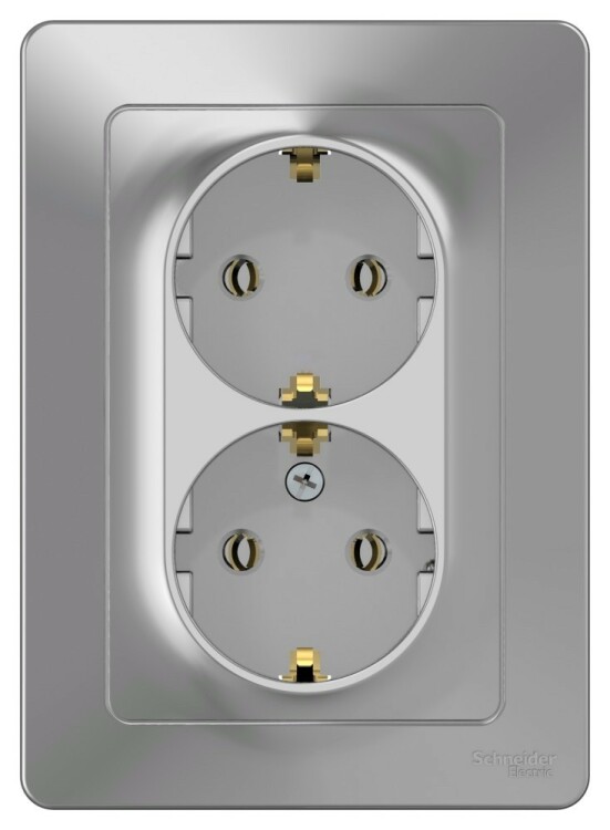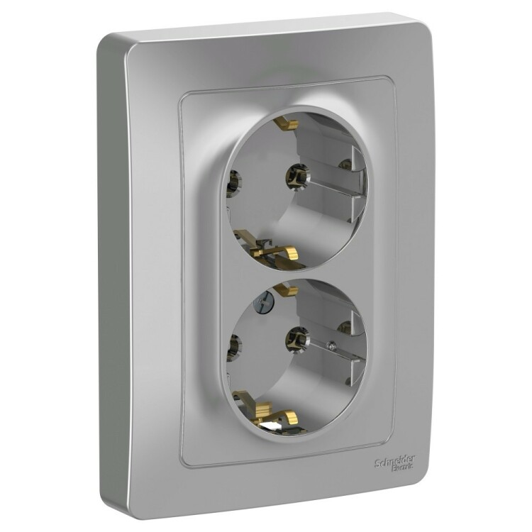 Розетка Systeme Electric (ранее Schneider Electric) BLANCA (алюминий, скрытой установки) двухместная, с заземлением, без шторок предназначена для сетей до 250В, на ток до 16А. Двухместная розетка позволяет подключить два устройства в одном месте. Заземление обеспечивает безопасность при косвенном прикосновении. Она изготовлена из ABS-пластика, проста в установке и удобна в применении.