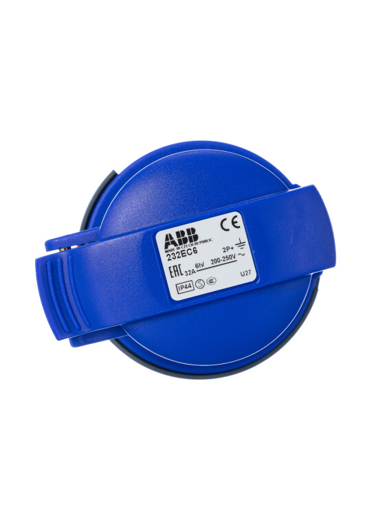 Розетка кабельная Easy&Safe, 32A, IP44, 2P+E, положение заземляющего контакта: 6ч, синий цветовой код. Корпус из термопласта (PA). Кабельный ввод с цапфовым зажимом. Сечение жилы кабеля: 2,5-6 мм