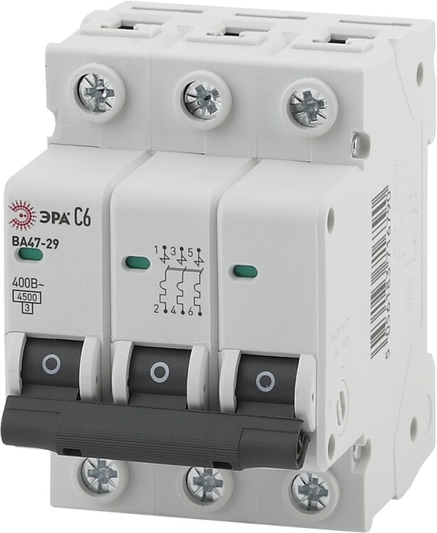 Автоматический выключатель - контактный коммутационный аппарат, способный включать токи, проводить их и отключать при нормальных условиях в цепи, а также включать, проводить в течение нормированного (заданного) времени и автоматически отключать токи при нормированных ненормальных условиях в цепи, таких, как токи короткого замыкания. Автоматические выключатели бывают одно-, двух-, трёх- или четырёхполюсными и имеют следующие конструктивные узлы: главную контактную систему, дугогасительную систему, привод расцепляющего устройства, расцепители. Автоматические выключатели ВА47-29 предназначены для защиты распределительных и групповых цепей, имеющих различную нагрузку: электроприборы, освещение выключатели с характеристикой В; двигатели с небольшими пусковыми токами (компрессор, вентилятор) выключатели с характеристикой C; двигатели с большими пусковыми токами (подъемные механизмы, насосы) выключатели с характеристикой D.