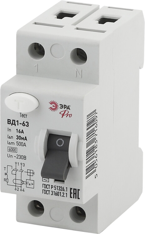 УЗО ЭРА PRO NO-902-26 ВД1-63 2P 16А 30мА (кр. 1шт)