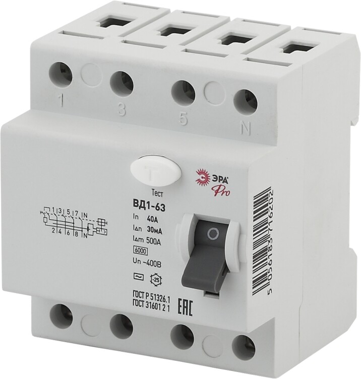 УЗО ЭРА PRO NO-902-39 ВД1-63 4P 40А 30мА (кр. 1шт)