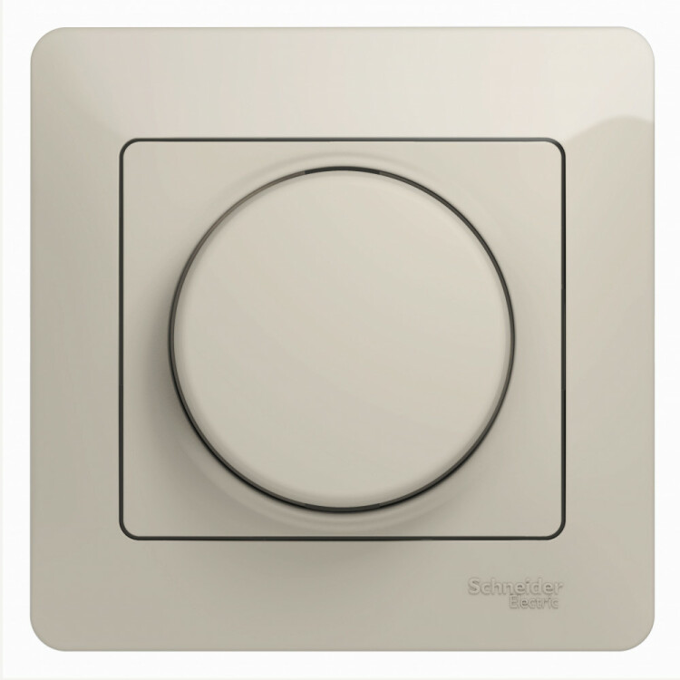Светорегулятор Systeme Electric (ранее Schneider Electric) серии Glossa (в сборе, цвет молочный) поворотный для нагрузки мощностью до 300 Вт. - Светорегулятор позволяет установить в помещении комфортный уровень освещения. - Выполнен из материала PС+ASA, стойкого к УФ-излучению и появлению царапин.