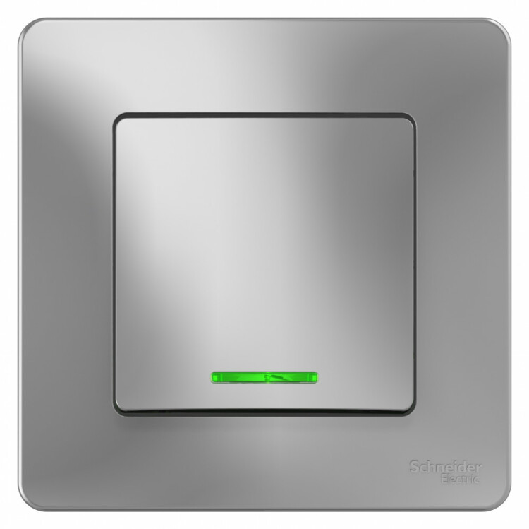 Переключатель Systeme Electric (ранее Schneider Electric) BLANCA (алюминий, скрытой установки) одноклавишный предназначен для сетей до 250В, на ток до 10А. Подсветка делает его легко находимым в отсутствие освещения. Переключатель позволяет управлять одним источником света из двух точек. Корпус изделия выполнен из ABS-пластика.
