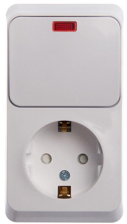 Блок Schneider Electric ЭТЮД (белый, открытой установки) предназначен для применения в сетях до 250В, состоит из розетки на 16А с заземлением и шторками и одноклавишного выключателя на 10А с подсветкой, что делает его легко находимым при отсутствии освещения. Он удобен в применении и отлично подходит для коридора. Сделано в России.