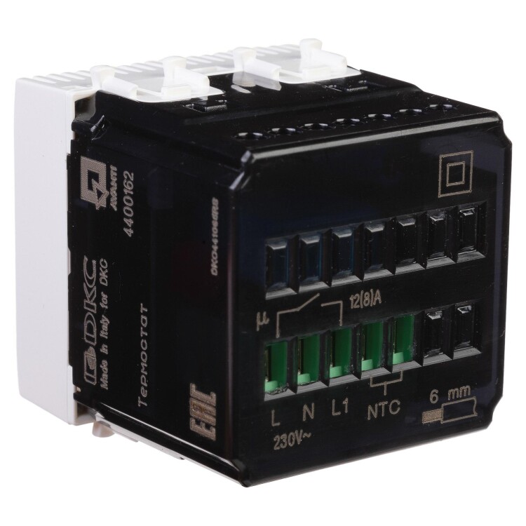 Термостат – устройство, предназначенное для регулировки температуры. Компания ДКС предлагает вашему вниманию термостат для теплых полов, применение которого позволяет устанавливать комфортную температуру пола. Двухмодульный термостат монтируется в настенный кабель канал. Номинальное напряжение – 230 В, номинальный ток – 12 А.