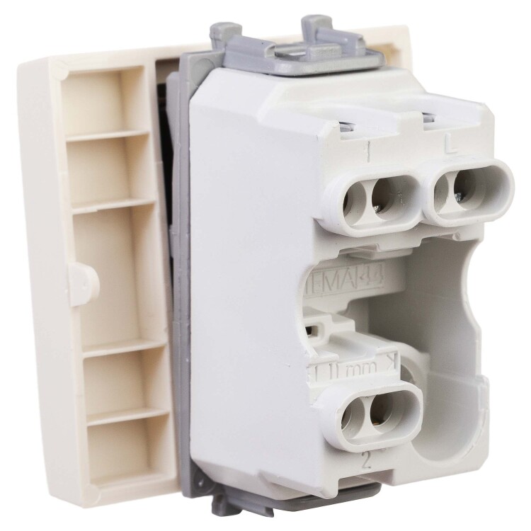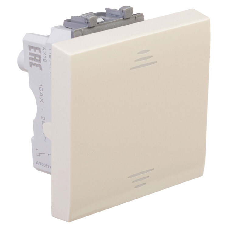 Переключатель модульный серии «Avanti». Предназначен для монтажа в систему кабельных коробов «In-liner Front» и систему организации рабочих мест «Сотто» (Sotto) (алюминиевые кабель-каналы, колонны, башенки и лючки) при помощи рамок-суппортов и каркасов «Avanti» (код 4400912 и т. д.). Используется для включения/выключения освещения с двух мест. Диаметр отверстий для ввода кабелей — 3 мм (по 2 отверстия на одну клемму); винтовые зажимы; шаблон для зачистки кабеля — 11 мм; номинальное напряжение — 230 В. Фиксация в подрозеточные коробки при помощи каркаса с лапками (код 4400802) и саморезов. 2 модуля. Цвет: «Ванильная дымка». Производитель оставляет за собой право вносить во внешний вид изделия изменения, которые не влияют на его функционал, безопасность и надёжность.