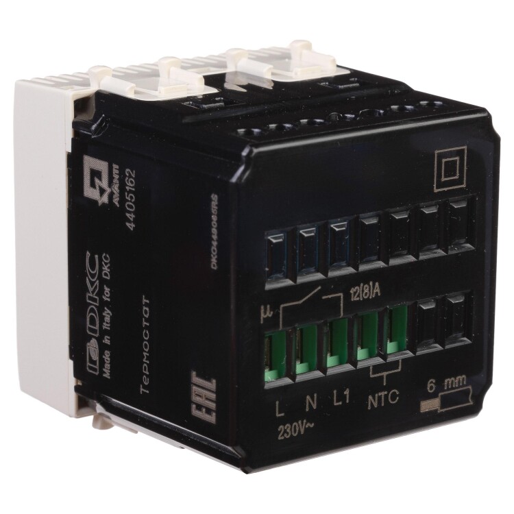Термостат – устройство, предназначенное для регулировки температуры. Компания ДКС предлагает вашему вниманию термостат для теплых полов, применение которого позволяет устанавливать комфортную температуру пола. Двухмодульный термостат монтируется в настенный кабель канал. Номинальное напряжение – 230 В, номинальный ток – 12 А.