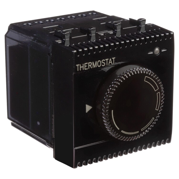 Термостат – устройство, предназначенное для регулировки температуры. Компания ДКС предлагает вашему вниманию термостат для теплых полов, применение которого позволяет устанавливать комфортную температуру пола. Двухмодульный термостат монтируется в настенный кабель канал. Номинальное напряжение – 230 В, номинальный ток – 12 А.