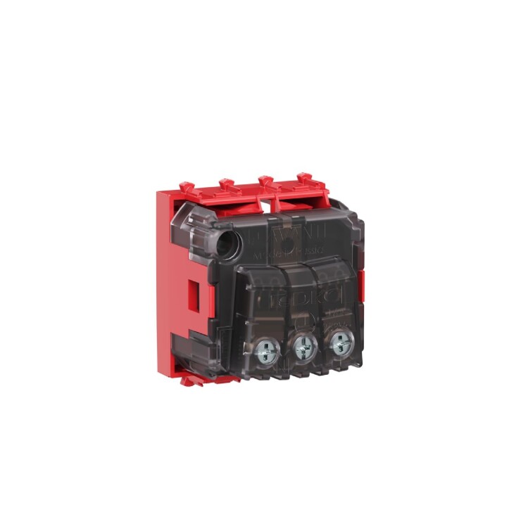Розетка электрическая с заземлением, со шторками и возможностью установки подсветки, модульная. Предназначена для монтажа в систему кабельных коробов "In-liner Front",систему алюминиевых кабельных коробов и колонн "Aero", лючки и башенки BUS при помощи рамок-суппортов и каркасов "Avanti" (код 4400912 и т.д.); подключение оргтехники, бытовых приборов и т. д. Характеристики: диаметр отверстий для ввода кабелей – 3 мм (по 2 отверстия на одну клемму); винтовые зажимы; защитные шторки; шаблон для зачистки кабеля – 11 мм; номинальный ток – 16 A; номинальное напряжение – 230 В; фиксация в подрозеточные коробки глубиной не менее 45 мм при помощи каркаса с лапками (код 4400802) и саморезов. 2 модуля. Цвет: "Красный квадрат". Производитель оставляет за собой право вносить во внешний вид изделия изменения, которые не влияют на его функционал, безопасность и надежность.