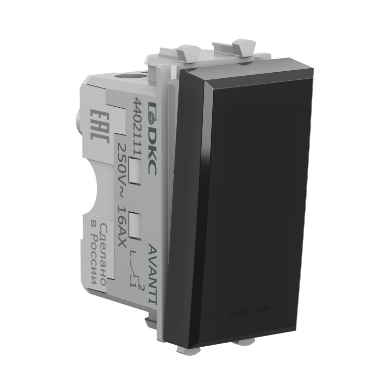 Переключатель модульный серии "Avanti". Предназначен для монтажа в систему кабельных коробов "In-liner Front", систему алюминиевых кабельных коробов и колонн "Aero", лючки и башенки BUS при помощи рамок-суппортов и каркасов "Avanti" (код 4400912 и т.д.); включения/выключения освещения с двух мест. Диаметр отверстий для ввода кабелей – 3 мм (по 2 отверстия на одну клемму); винтовые зажимы; шаблон для зачистки кабеля – 11 мм; номинальное напряжение – 230 В. Фиксация в подрозеточные коробки при помощи каркаса с лапками (код 4400802) и саморезов. 1 модуль. Цвет: "Черный квадрат". Производитель оставляет за собой право вносить во внешний вид изделия изменения, которые не влияют на его функционал, безопасность и надежность.