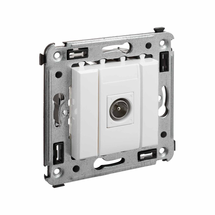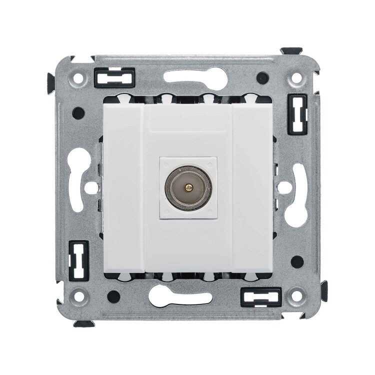 Одиночны е телевизионные розетки предназначены для скрытой установки в стенах и применяются для подключения телевизионного кабеля. TV-розетки производства ДКС рассчитаны на частоту до 2400 Гц. Материал – металл, пластик. Пластиковые части имеют цвет "Белое облако" – это универсальный, легкий и воздушный оттенок, смягчающий цветовые сочетания и несущий чувство покоя. Количество модулей в изделии – 2.